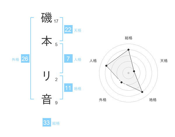 磯本 リ音さんの天格は22画の1点!