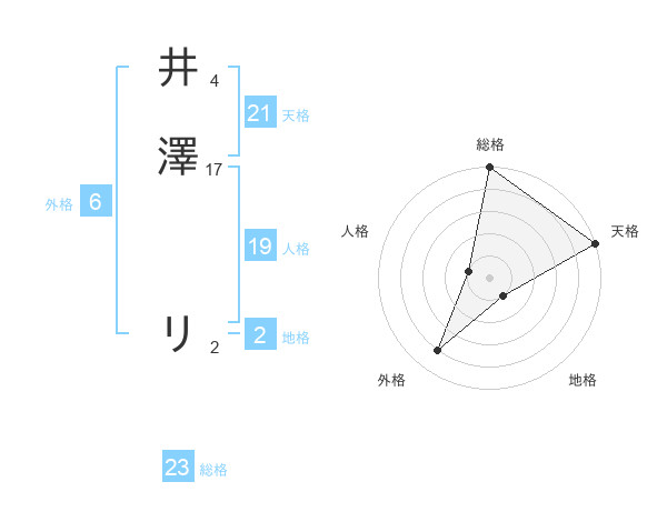 井澤 リさんの総格は23画の5点!