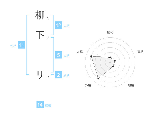 柳下 リさんの天格は12画の1点!