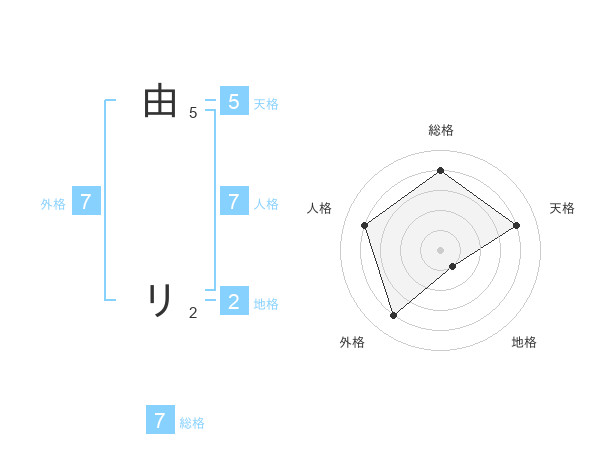 由 リさんの総格は7画の4点!