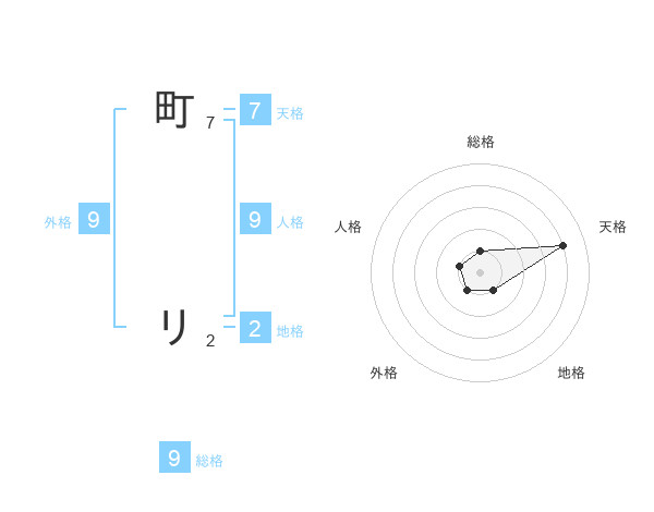 町 リさんの総格は9画の1点!