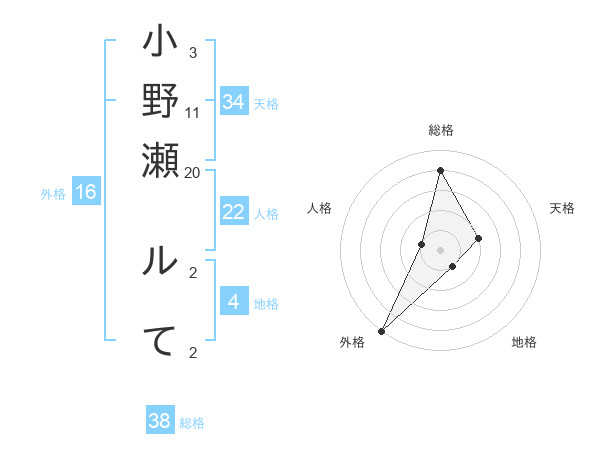 小野瀬 ルてさんを姓名の画数から五運を鑑定