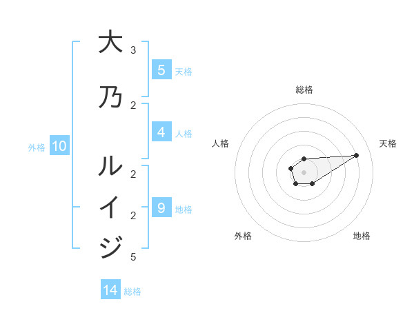 大乃 ルイジさんを姓名の画数から五運を鑑定