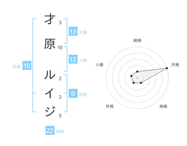 才原 ルイジさんを姓名の画数から五運を鑑定