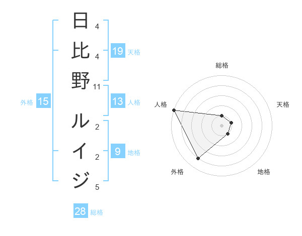 日比野 ルイジさんを姓名の画数から五運を鑑定