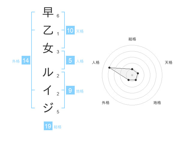 早乙女 ルイジさんを姓名の画数から五運を鑑定