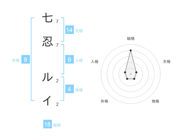 七忍 ルイさんを姓名の画数から五運を鑑定