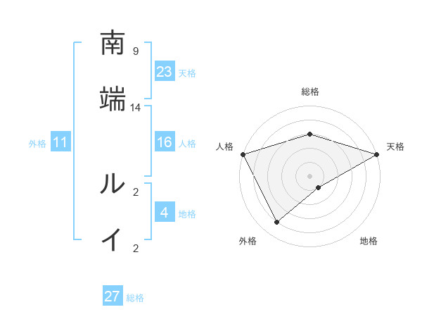 南端 ルイさんの天格は23画の5点!
