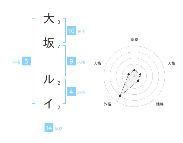 大坂 ルイさんを姓名の画数から五運を鑑定