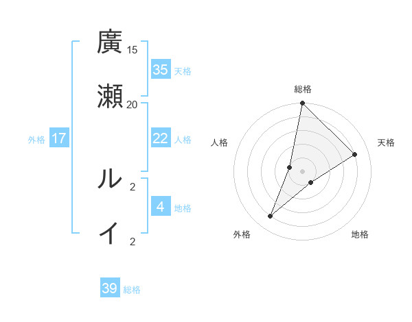 廣瀬 ルイさんの総格は39画の5点!