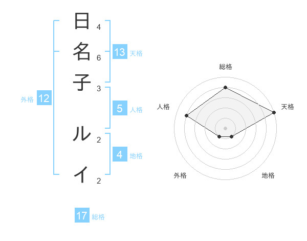 日名子 ルイさんの総格は17画の4点!
