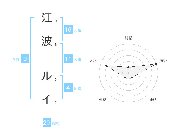 江波 ルイさんの総格は20画の1点!