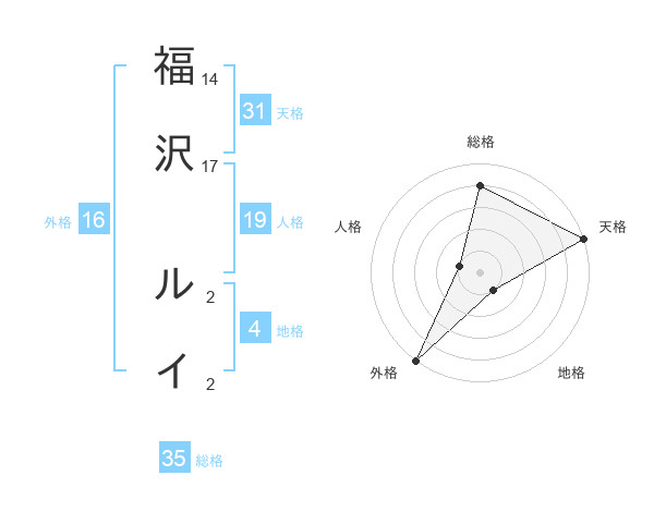 福沢 ルイさんの外格は16画の5点!