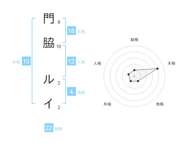 門脇 ルイさんの総格は22画の1点!