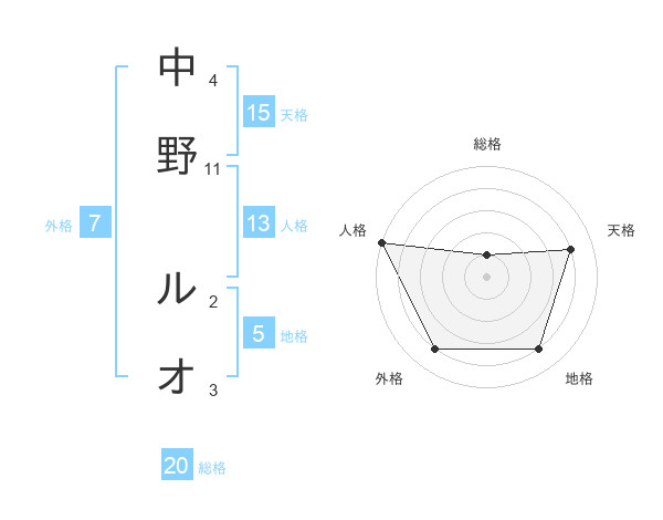 中野 ルオさんの総格は20画の1点!