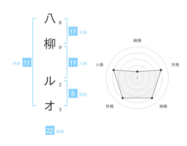 八柳 ルオさんを姓名の画数から五運を鑑定