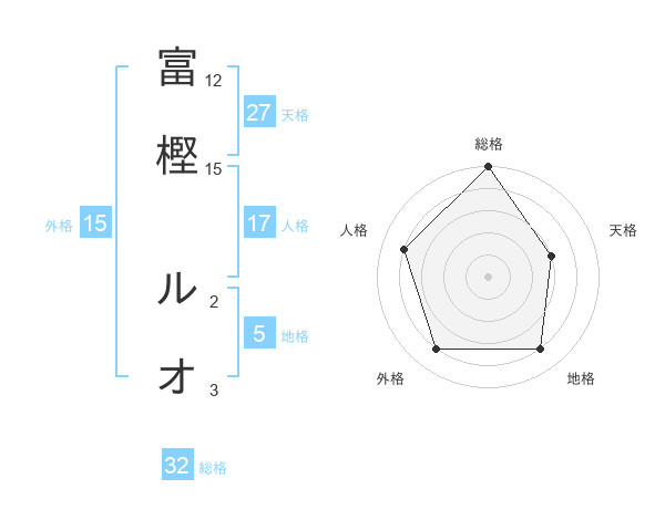 富樫 ルオさんの総格は32画の5点!