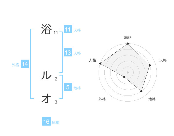 浴 ルオさんの総格は16画の5点!