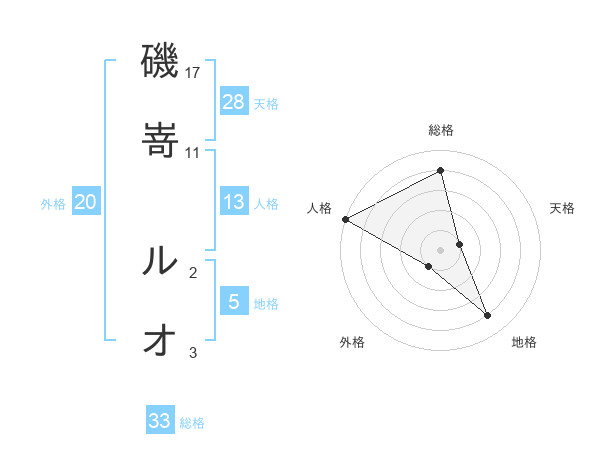 磯嵜 ルオさんを姓名の画数から五運を鑑定