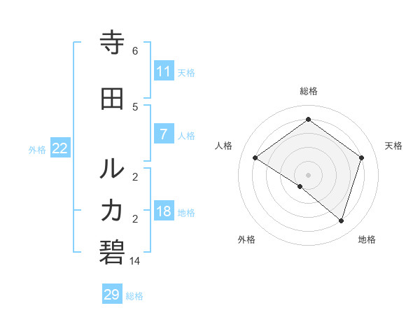 寺田 ルカ碧さんを姓名の画数から五運を鑑定