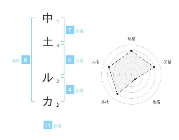 中土 ルカさんの総格は11画の4点!