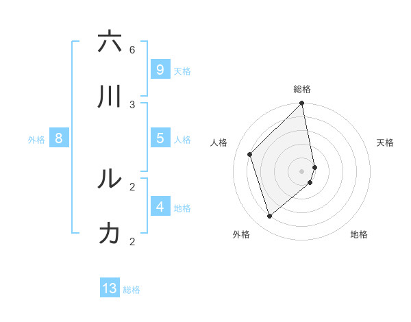 六川 ルカさんの総格は13画の5点!
