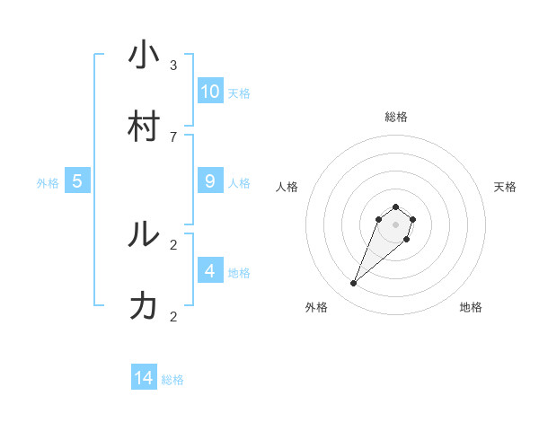 小村 ルカさんの総格は14画の1点!