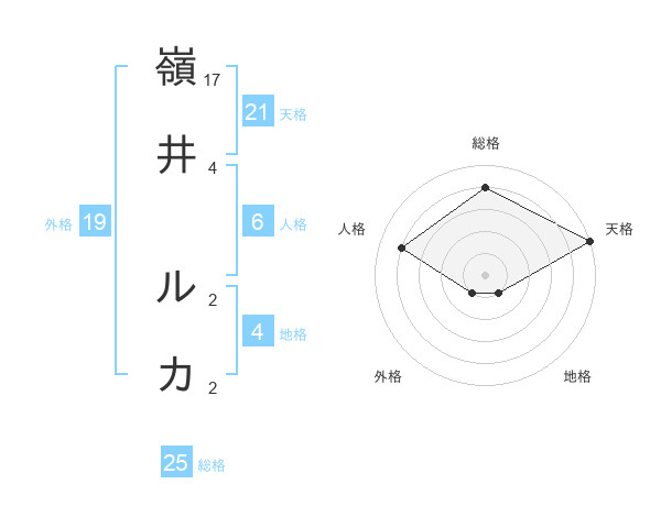 嶺井 ルカさんの総格は25画の4点!