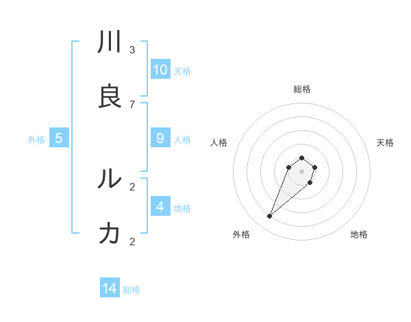 川良 ルカさんの天格は10画の1点!