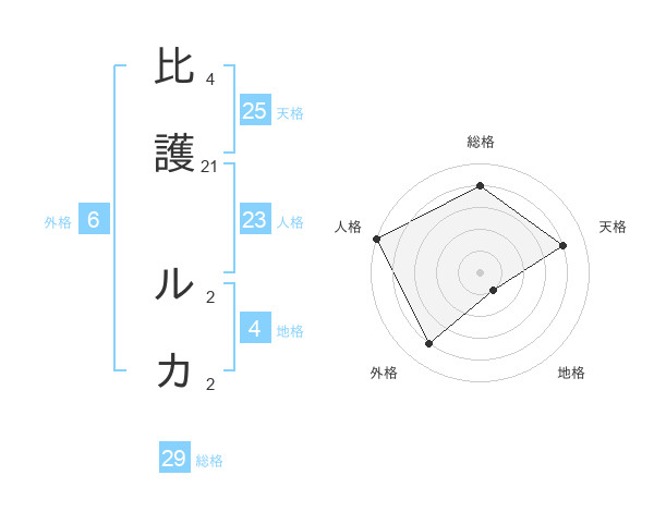 比護 ルカさんの総格は29画の4点!