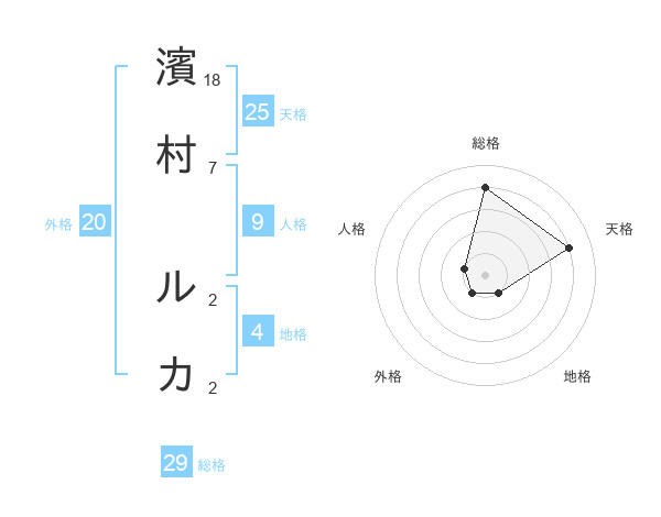 濱村 ルカさんを姓名の画数から五運を鑑定