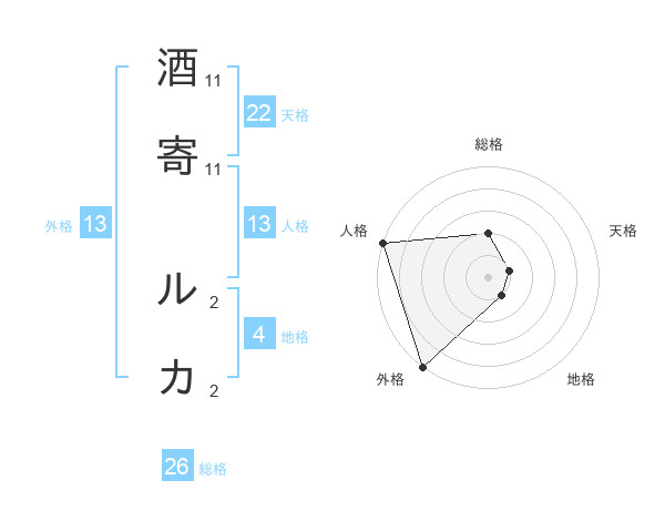 酒寄 ルカさんの外格は13画の5点!
