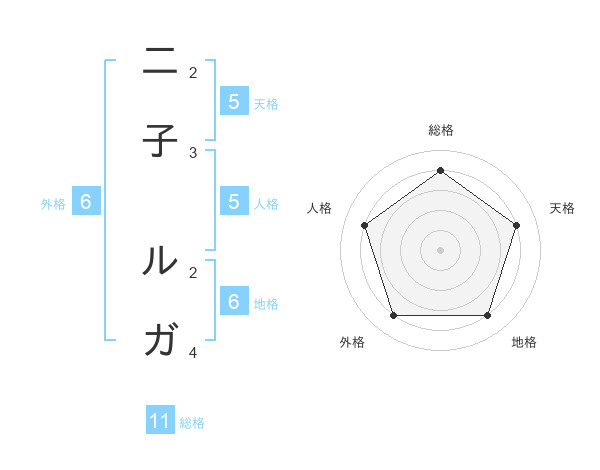 二子 ルガさんの総格は11画の4点!
