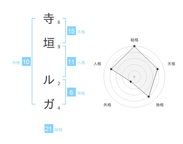 寺垣 ルガさんの総格は21画の5点!