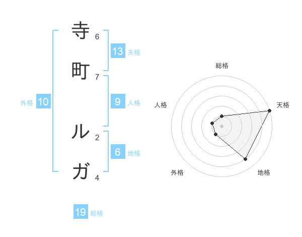 寺町 ルガさんの天格は13画の5点!
