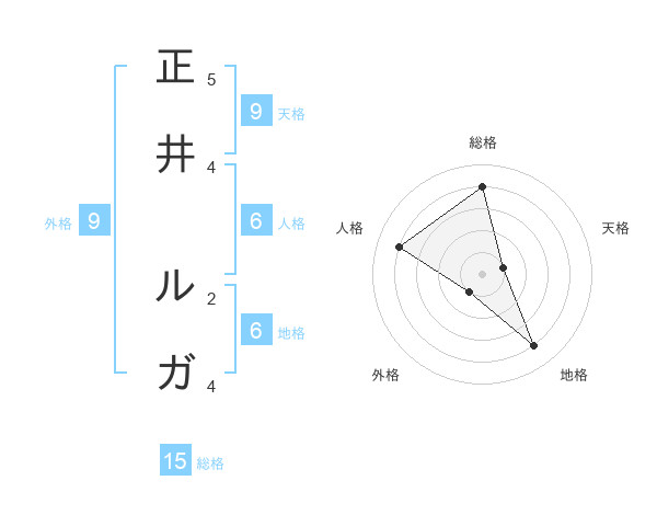 正井 ルガさんの外格は9画の1点!