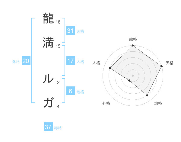 龍満 ルガさんを姓名の画数から五運を鑑定