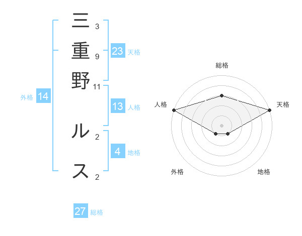 三重野 ルスさんの天格は23画の5点!