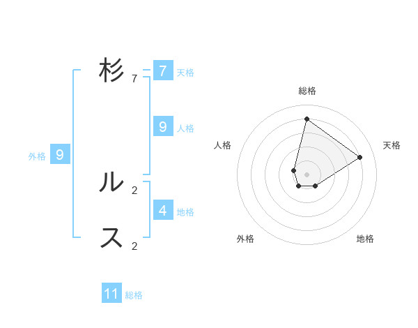 杉 ルスさんの総格は11画の4点!