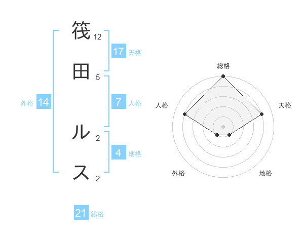 筏田 ルスさんを姓名の画数から五運を鑑定