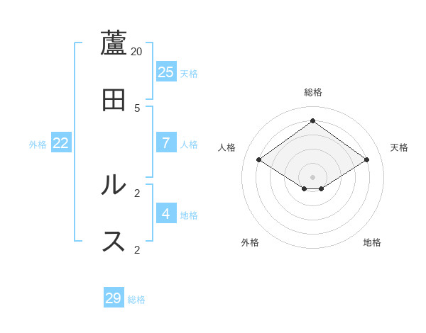 蘆田 ルスさんを姓名の画数から五運を鑑定