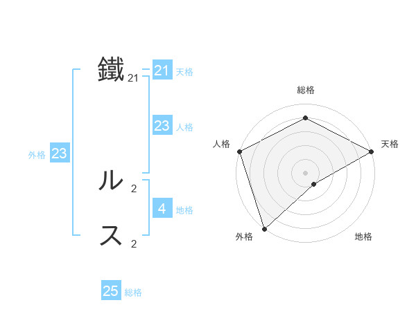 鐵 ルスさんの総格は25画の4点!