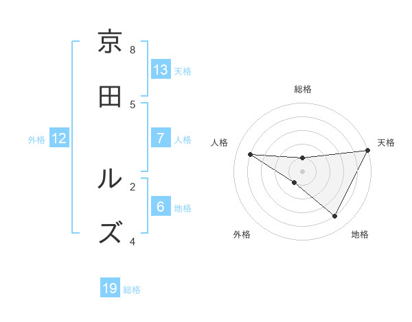 京田 ルズさんの天格は13画の5点!