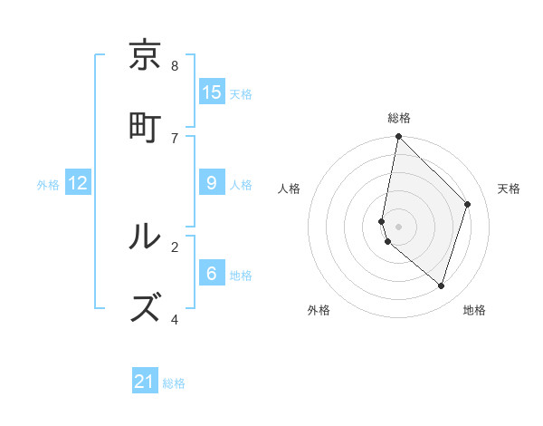 京町 ルズさんの総格は21画の5点!