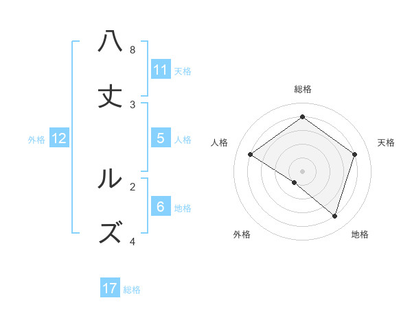 八丈 ルズさんの総格は17画の4点!