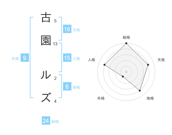 古園 ルズさんの総格は24画の5点!
