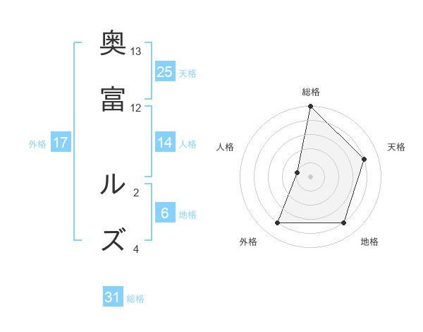奥富 ルズさんの外格は17画の4点!