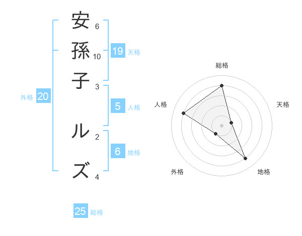 安孫子 ルズさんの総格は25画の4点!