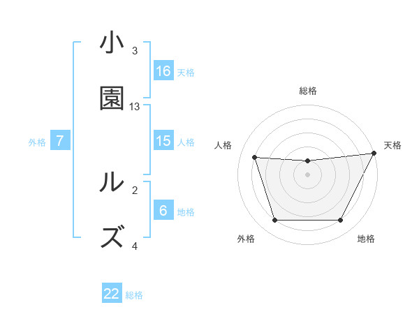 小園 ルズさんの天格は16画の5点!