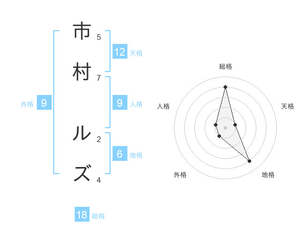 市村 ルズさんの総格は18画の4点!